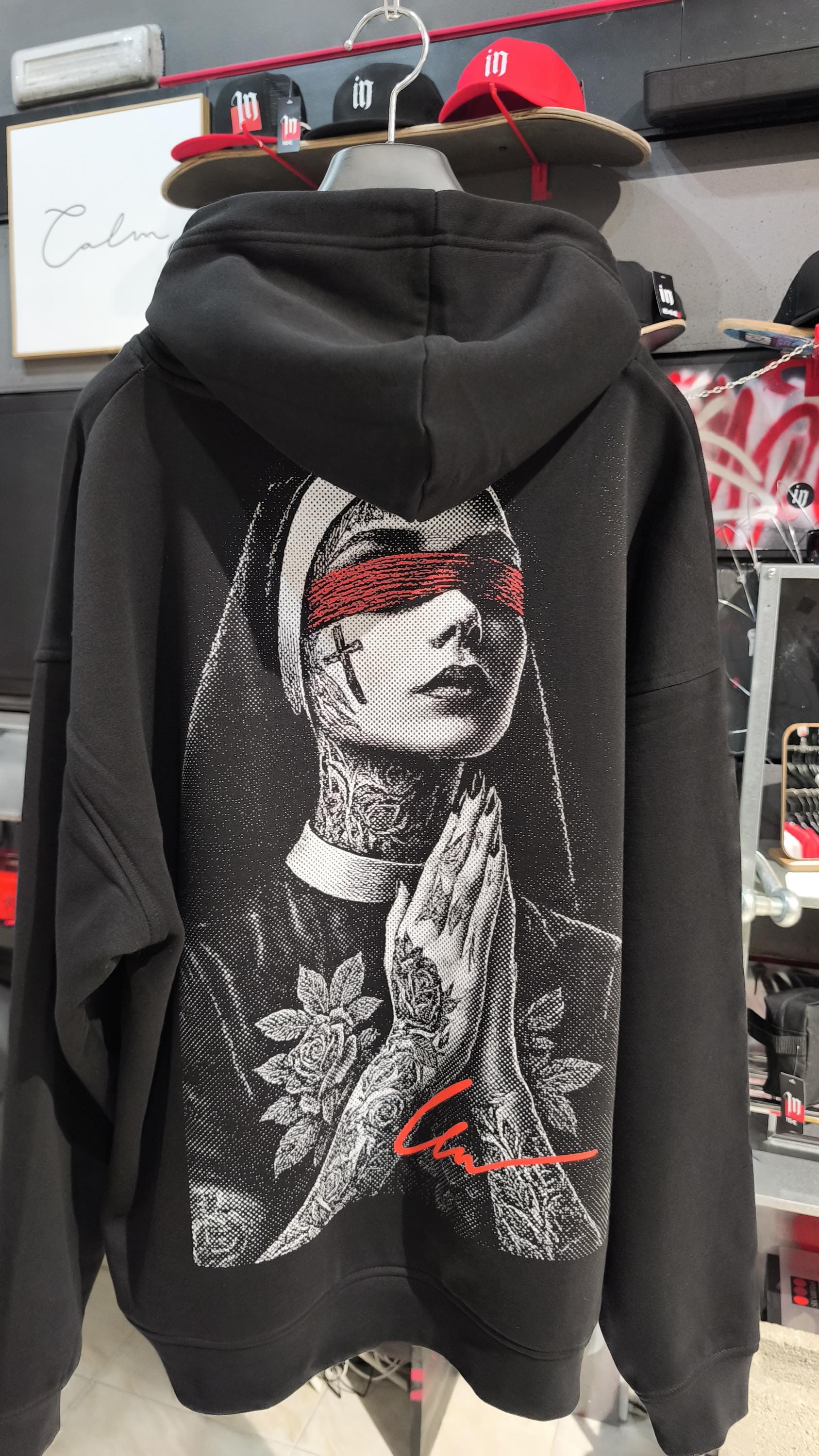 Sudadera unisex oversize con capucha y bolsillo canguro.